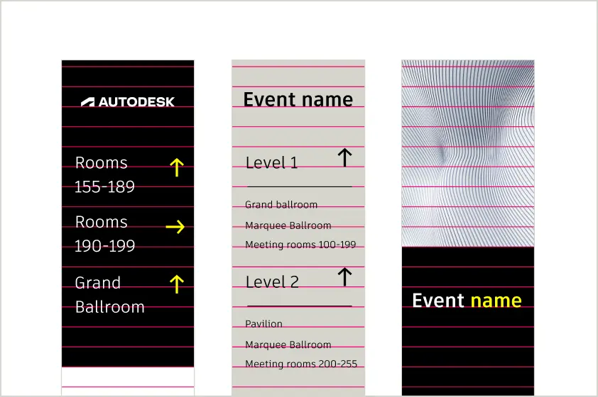 Our grid system provides structure and scalability, adapting seamlessly to various formats, while the strategic use of Autodesk colors delivers a bold and recognizable identity. Together, these tools empower teams to create a system of grids and designs that are both consistent and dynamic, bringing clarity to complexity and fostering a unified brand experience.