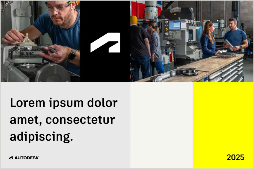 Color blocking defines sections and draws attention to key content. The use of Autodesk Black and Autodesk White Yellow ensures clarity and focus.
